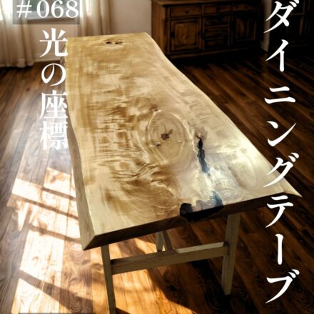 #062 栃(トチ) ダイニングテーブル 「クリスタル加工済み」 まるで舞台に立つ女優の…